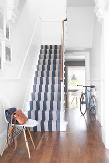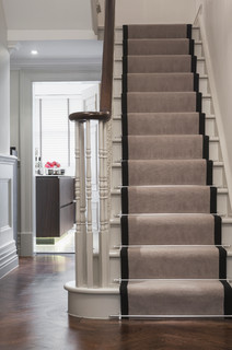 I am a big fan of houzz for interior design inspiration. If you’ve never heard of houzz – it’s like pinterest for house stuff. If you’ve never heard of pinterest……..hmmm. This link was pretty handy in helping me decide on how wide I wanted my runner to be and whether I wanted a waterfall edge or a Hollywood edge. Solid or patterned. On the landing or not. Basically every decision that you will also have to make if you are planning on installing a stair runner.